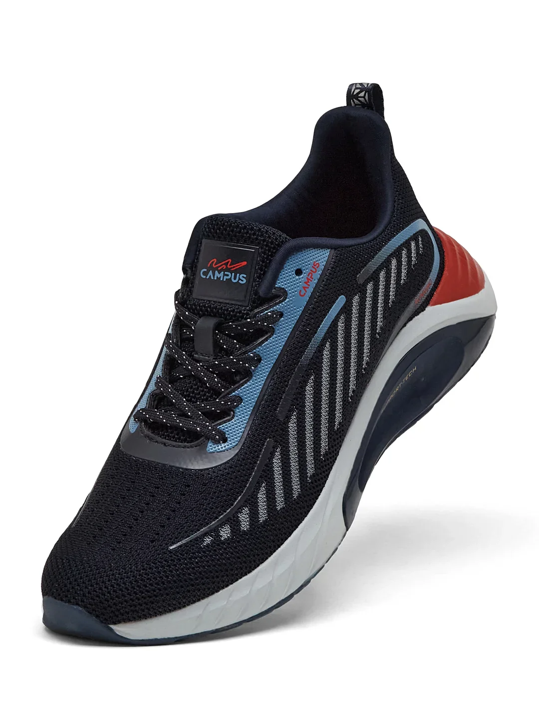 Elevate both your performance and look with the Campus Abacus Men's Running Shoes. Designed with advanced support tech, these shoes ensure foot stability and ease on all surfaces. The lightweight EVA outsole works in harmony with the memory foam insole, offering exceptional comfort and flexibility, making them ideal for all-day wear. Crafted with a sleek knitted vamp upper, a secure lace-up closure, and featuring a striking blue and bold red color combo, these add a modern flair to your outfit, whether you're hitting the track, the cool cafes, or the streets.