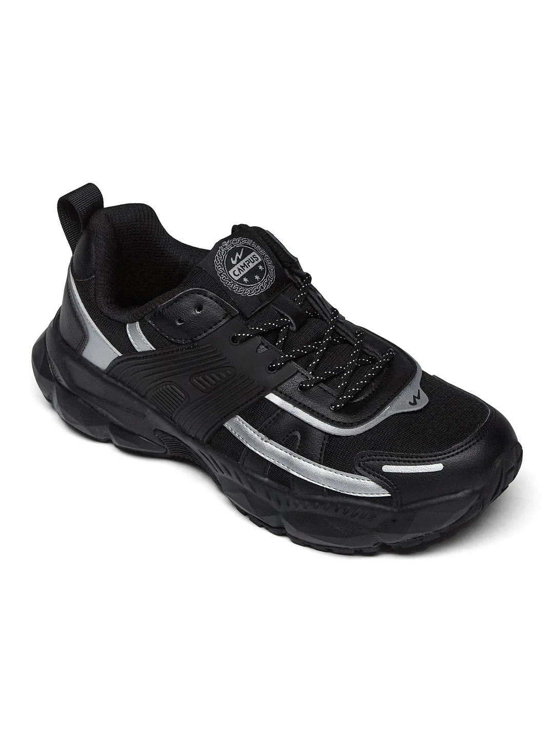 Go bold n' wild with the Campus REPORT Men's Sneakers in Black & Silver. These kicks pair a breezy mesh & sturdy PU upper, topped with a TPU buckle for enhanced stability and movement. The lightweight yet rugged sole teams up with the rubber outsole for reliable all-surface grip. With a cushioned insole that keeps your feet comfy all day, these sneakers are your saviour for everyday statement looks to fun evening outs!
